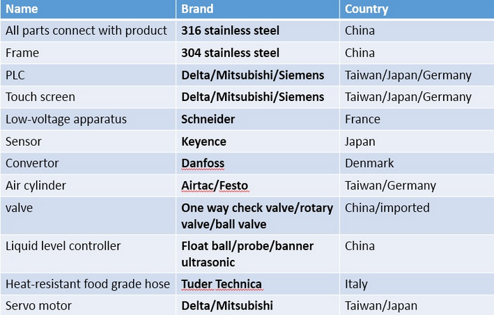 1. Materialul tuturor pieselor prin care trece produsul poate fi echipat în funcție de caracterul produsului, astfel încât materialele sunt ideale pentru a umple majoritatea produselor puternic corozive.